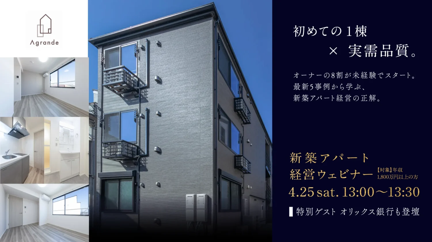 「初めての1棟 × 実需品質 新築アパート経営ウェビナー」を開催いたします